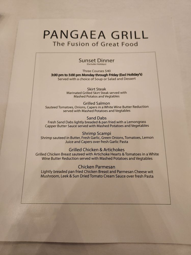 Pangaea Grill, located in the heart of Carmel-by-the-Sea, offers a diverse menu with options for everyone. From light breakfast items like Avocado Toast and Oatmeal to hearty breakfast classics like Benedict variations and Hawaiian Plate, there is something for every palate. The restaurant caters to various dietary preferences with Keto, Vegan, and many Vegetarian options available. The ambiance is described as trendy, classy, and intimate, making it perfect for any occasion. Customers rave about the attentive service and delicious dishes, with standout items like Seafood Pasta, Chicken, and Shrimp Scampi receiving high praise. Don't forget to save room for dessert - the Lemon Cake and Chocolate Cake are top-notch. Overall, Pangaea Grill promises a memorable dining experience with exceptional food, service, and ambiance.